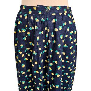 Daks Navy Blue Lemon Print Long Length Skirt Sz 12