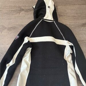 Experience comfort and style with this performance jacket. Features a sleek black and cream design. Perfect for outdoor activities.