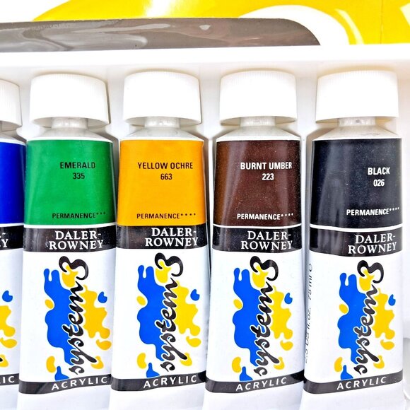 The Daler-Rowney System3 Acrylic Paint Set is a popular and economical choice for both students and professional artists. This particular set includes eight 75ml tubes of assorted colors, providing a foundational palette for a wide range of creative projects.