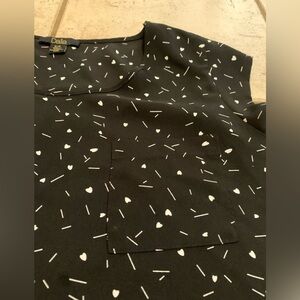 Dalia, blouse, top, heart print, cap sleeve, black and white, small/petite, S/P, casual, office, romantic, everyday wear