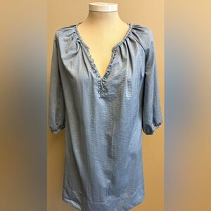 Dalia Collection Blue Smocked Silky Satiny 3/4 Sleeve Dress women's size Medium