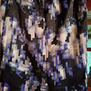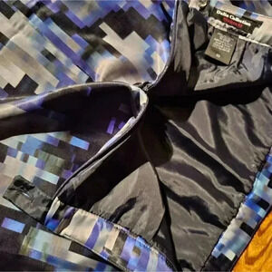 Mini Skirt size 10 in shiny polyester pattern sparkles in blue navy silver fully lined back zip with button
