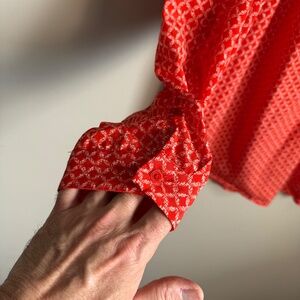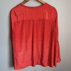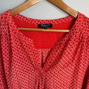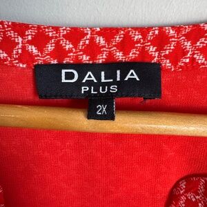 Dalia Plus Women's Long Sleeve Lightweight Satin Pullover V-Neck Blouse Red 2X