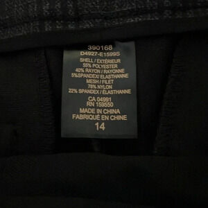 These are women's pants featuring a built-in tummy control panel for a flattering fit. They are designed with a 30-inch inseam and offer a sleek, modern look. It’s brand new and in excellent condition sized 14
