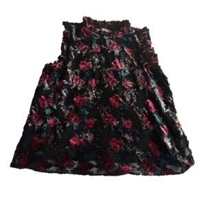Dalia Women's Size L Black Burnt Velvet Floral Sheer Ruffle Sleeveless Blouse