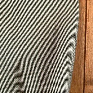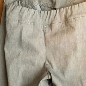 Small pinstripe navy/white ankle pants with braid band elastic waist. Size 18W. Stretch. See photos noting small stain/spots on front thigh. Otherwise great condition.