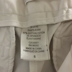 Dalia women’s ankle pants, white, size 6. Two front two back pockets