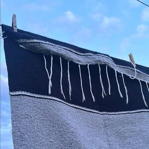 Black and gray striped blanket or wall decor with a Dallas star logo.