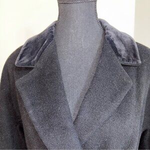 Dama Women’s Large 42 Elegant Black Wool AlpacaTrench Coat Italy Flared Vintage