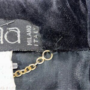 Stunning midi coat with button waist closure. Velvet texture collar. Flared, gathered bottom means you and twirl and swirl in this beautiful coat! Side pockets. Vintage, classic and made in Italy.