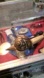 Material: The golden body is likely brass or a brass-plated metal, and the shell is a hard metal with a dark lacquer and gold paint.