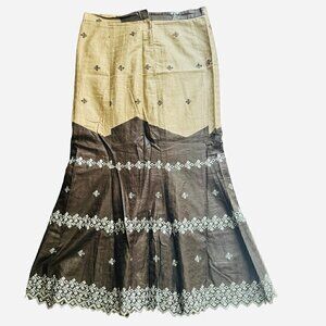 Damask print embroidered collar Skirt and Blouse Set. size large