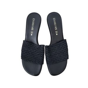 Damiani's Black Wedge Woven Top Slip On Sandals