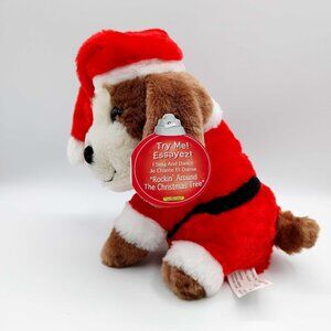 Dan Dee Animated Christmas Brown Dog Plush Toy Sings Dances 9 Inches Santa Suit