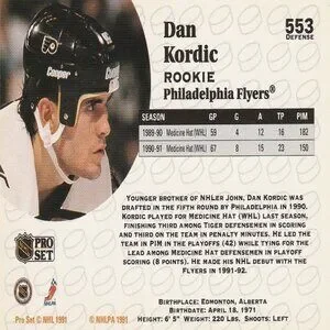 Dan Kordic - 1991 Pro Set Rookie Card