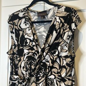 Dana Buchman Faux Wrap Floral Sleeveless V Neck Midi Dress in Brown Tan Cream