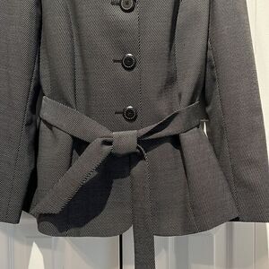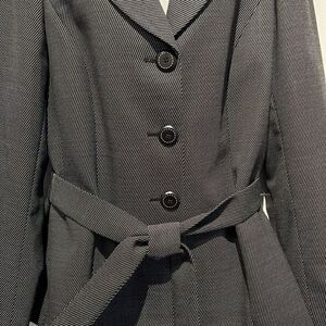 Dana Buchman Navy with White Tiny Polka Dots Wool Belted Blazer Jacket Size 12