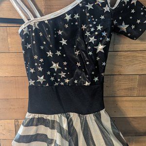 Kids black, silver dance costume. Child size medium fits about size 10. Excellent condition. Shorts on bottom.