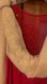 Red with lace upper back and yellow attached scarf and yellow feathers