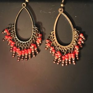 Orange beads and gold earrings Never worn Brand new Super cute statement piece!!