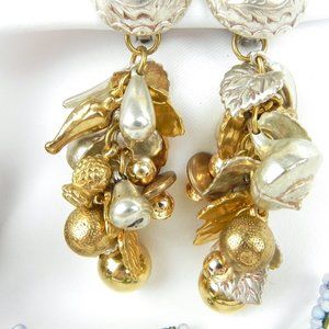 Dangling Gold & Silver Earrings | 80s Big Gold & Silver Earrings