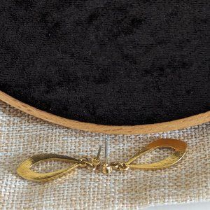 Dangling drop shaped golden metal vintage earrings with rhinestones