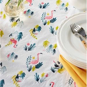 Danica Fiji Island vinyl tablecloth new with tags. High quality phthalate free vinyl, poly flannel on back, wipes clean with a damp cloth. Whimsical exotic look décor with flamingos, toucans and parrots, kidcore vibe. 54’’ x 72’’ REC - rectangular - (137 x183 cm - sits 4-6) Please see size chart in pictures. This item comes from a smoke free, pets friendly home. Recycled bags/box used when possible. Please, let me know if you'd like any additional pictures and/or measurements or other info. Thanks for looking!
