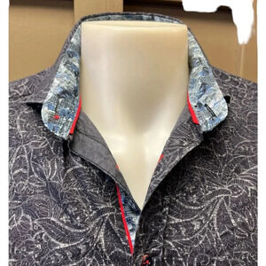 Daniel Hechter Blue Printed Long Sleeve Button Down Dress Shirts Size Large