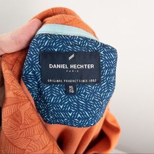 Daniel Hechter Mens Size XL Short Sleeve Polo Shirt Orange Leaf Motif Golf