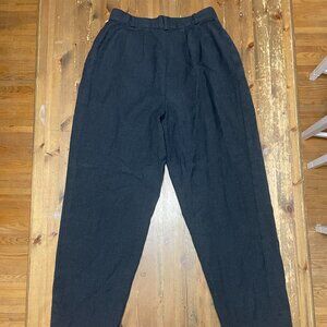 Tags: Daniel Hechter, wool, trousers, pants, dress pants, women's, size 12, high waist, pleated, straight leg, dark grey, vintage, 1940s, retro, timeless, work pants, zip fly, pockets, office, tailored style