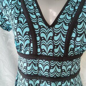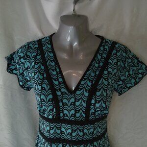 Daniel Laurent Women's V Neck Geometric Dress Sz Small Blue Black VTG Y2K