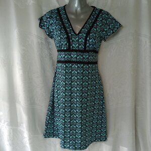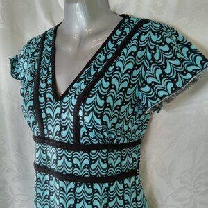 Daniel Laurent Women's V Neck Geometric Dress Sz Small Blue Black Vintage
