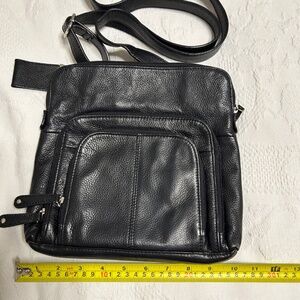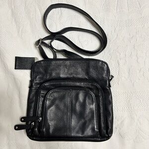 Daniel Leather Pebbled Black Crossbody Purse Multi Pocket Adjustable Strap