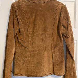 Daniel, Leather Woman Jacket, Tan with Blue stitching and Blue Lining, Size S, 5 buttons.