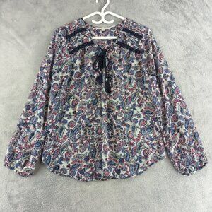 Daniel Rainn Blouse Womens Large Paisley Boho Top Blue Red Long Sleeve