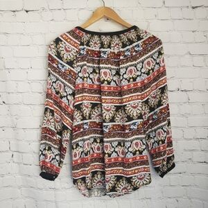 Daniel Rainn Boho Bohemian Flowy Tunic Top Geometric Hippie 70s Long Sleeve
