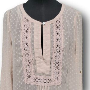 Daniel Rainn Dusty Rose Swiss Dot Crochet Bib Sheer Top Size Small