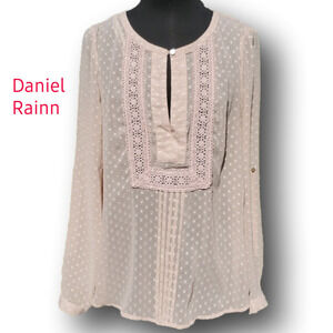 Daniel Rainn Dusty Rose Swiss Dot Crochet Bib Sheer Top Size Small