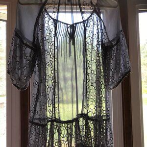 Daniel Rainn sheer soft grey lacy tunic style blouse with scoop neck and lacy short sleeves. Blouse is a size medium, comfortable and roomy. Like new condition, barely worn. Vintage