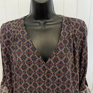 Daniel Rainn Multicolour Print Button Front Blouse, Size Medium Petite