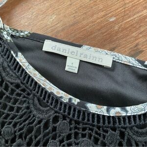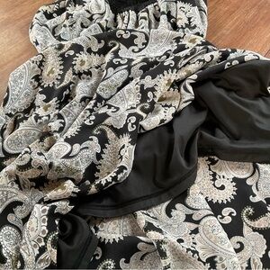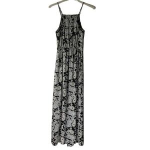 Daniel Rainn Paisley Maxi Dress S Embroidered Black White Green Tan Sheer Long