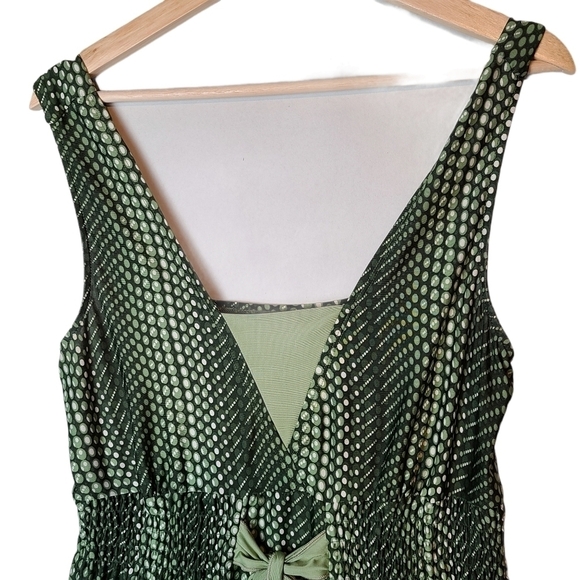 Daniel laurent green and white midlength vintage style dress. Thin, super lightweight, Stretchy, bow under the chest. Flared. Sleeveless. Size small