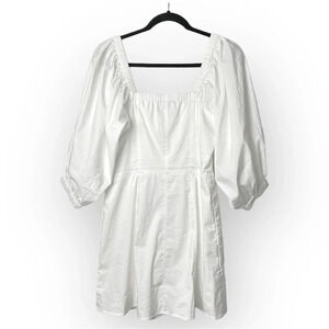Danielle Bernstein White Button Down Puff Sleeve Babydoll Mini Dress 6