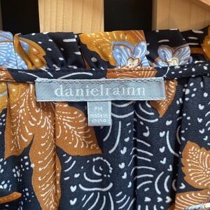 Beautiful danielrainn blouse with 3/4 length sleeves. Tiny ruffle collar. Button down front with teeny fabric covered buttons.