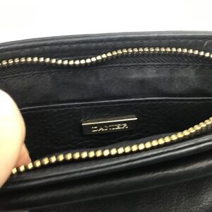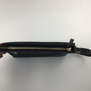 Sleek black leather Danier bag with a detachable strap converts from a wristlet to clutch or small handbag.