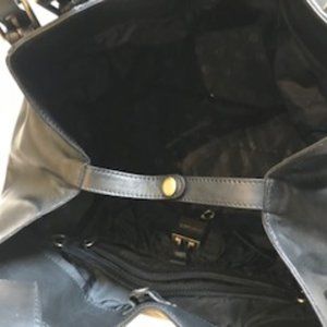 Danier Black Leather Handbag with Trendy Buckles. Brand New, never been used. Perfect for your laptop and other essentials.
