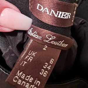 Front is black leather Back is knit Side zip closure Italian leather Leggings Size 2