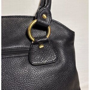 Danier Black Pebbled Leather Handbag With Double Straps & Gold Hardware Zip Snap