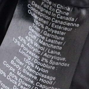 The outershell is Polyester, the trim is leather, the cuff is wool and the lining is Nylon.
