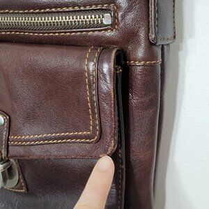 Danier Brown Adjustable Strap Leather Push Clasp Crossbody bag See Photos for some wear